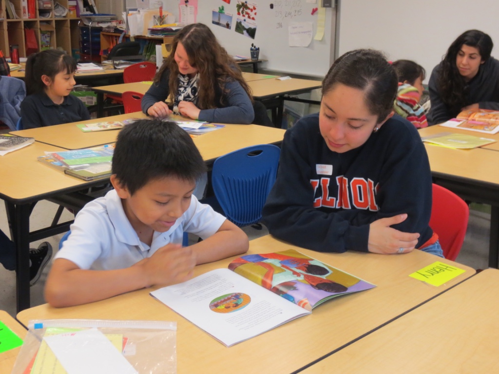 SOAR is an after-school tutoring program that provides literacy support and homework help to Latina/o emergent bilingual/biliterate students in grades 3-5 by pairing them one-on-one with students from the University of Illinois. Each semester approximately 100 dedicated and enthusiastic university students from a wide variety of academic majors volunteer their time weekly to provide academic support to program participants. SOAR is a collaboration between the College of Education and the Champaign Unit 4 School District that takes place at the International Prep Academy (IPA), 1605 W. Kirby Ave., Champaign, IL 61821. The program takes place on Tuesdays and Wednesdays from 2:00 pm - 3:30pm.